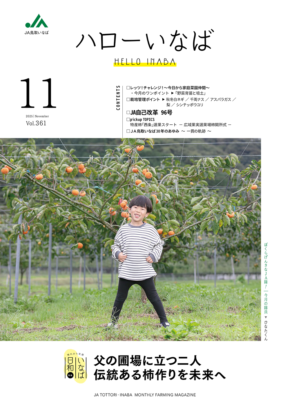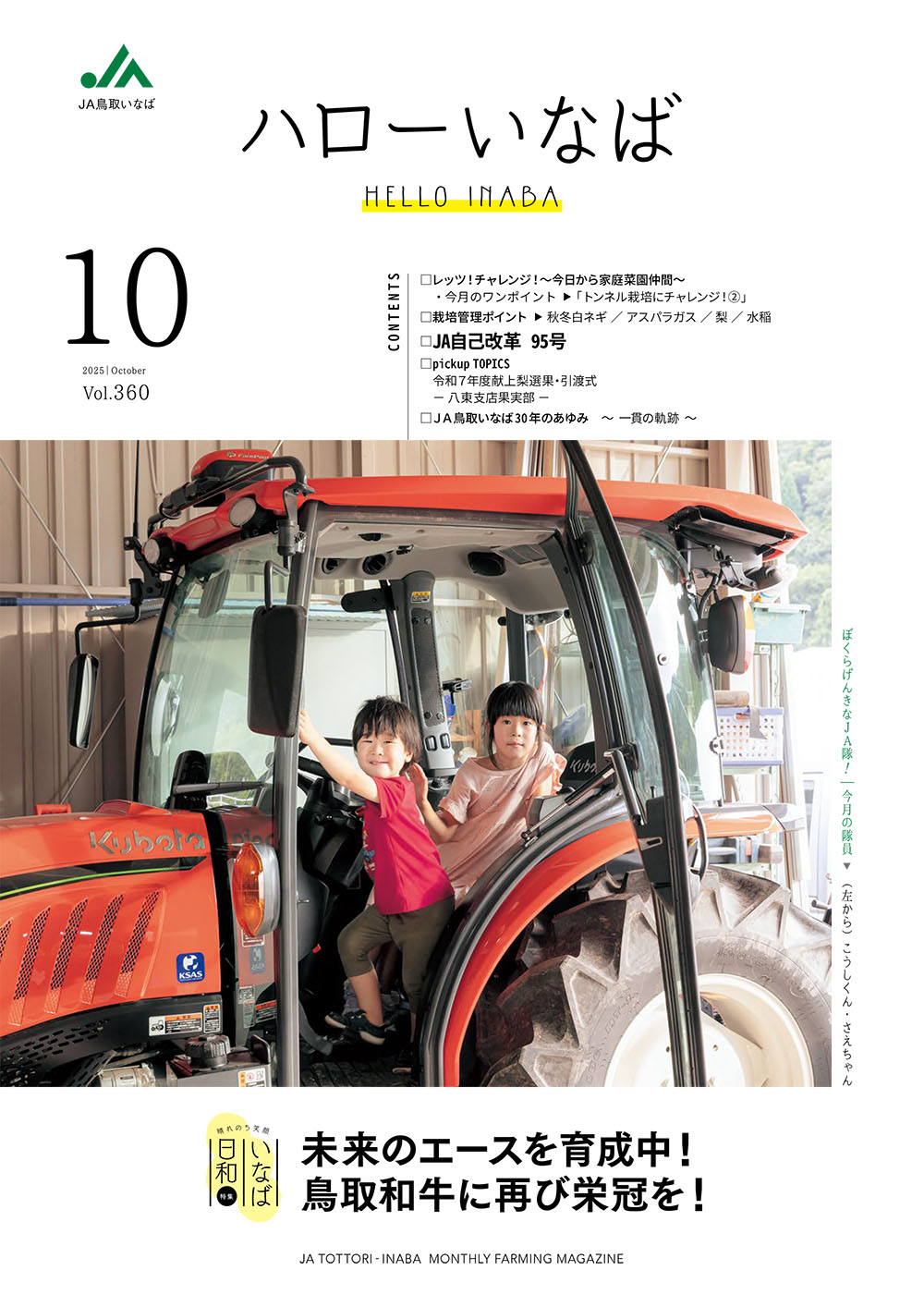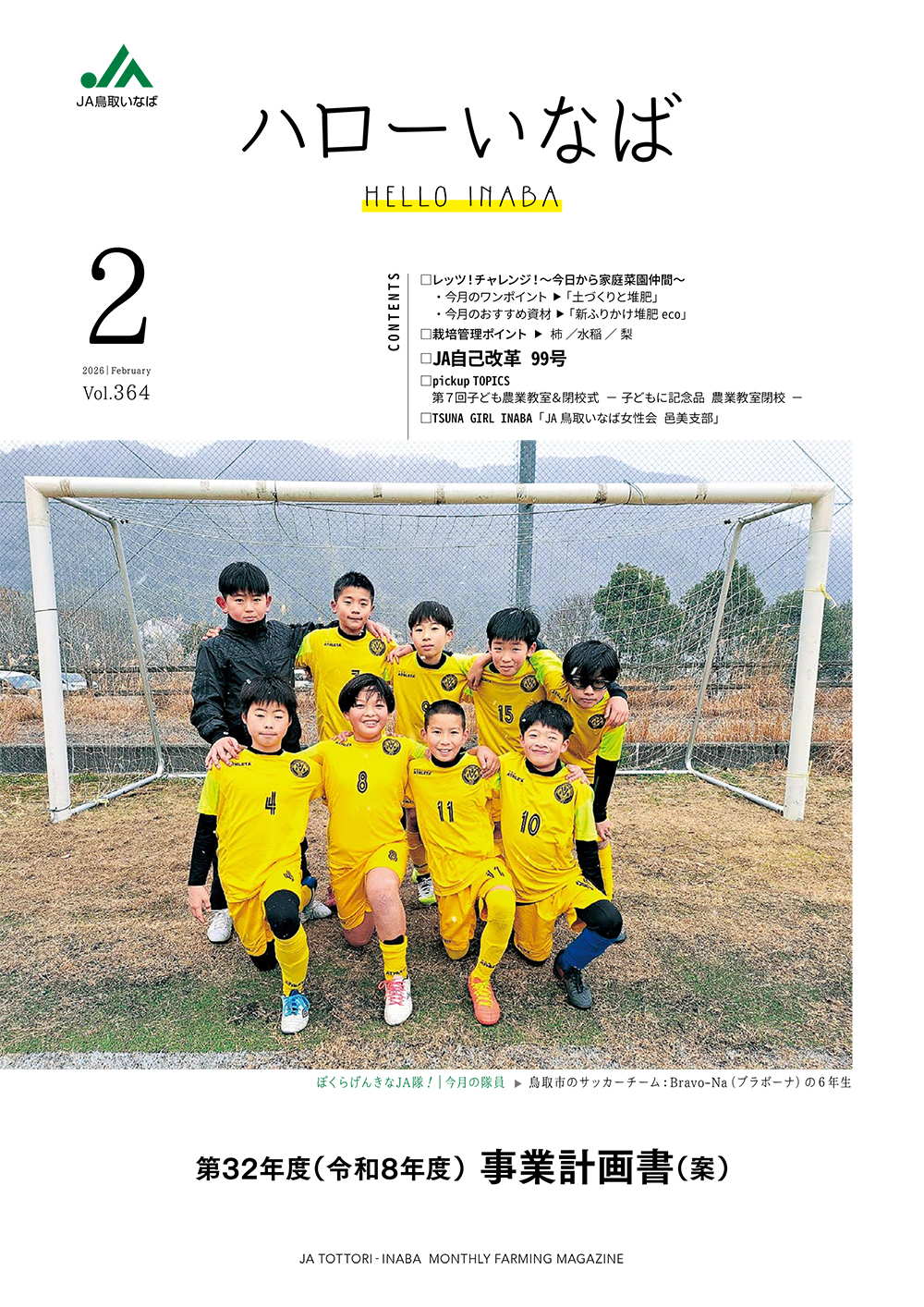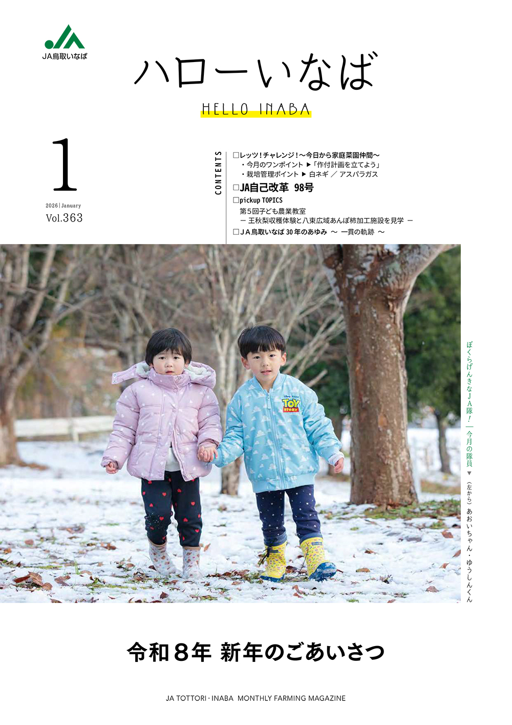 毎月JA鳥取いなば広報誌「ハローいなば」を発刊しています♪ 事業に関するお知らせや、地域の生産者さんのご紹介、支店行動計画の活動報告など、JA鳥取いなばのことをご紹介!